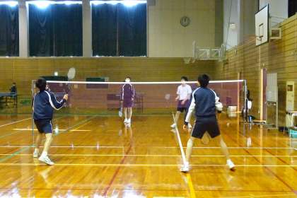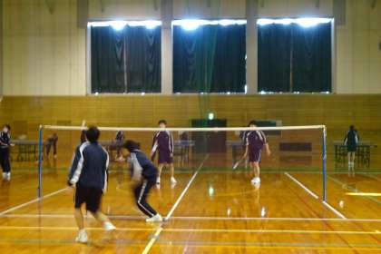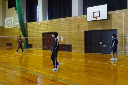 2月7日(月) 体育ではバドミントンと卓球を行っています。写真はバドミントンの様子です。