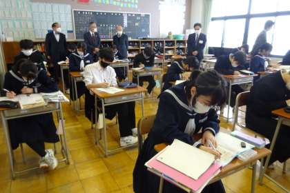 第2回学校評議員会を実施しました。昨年度と同様、今年度もコロナ禍で様々な学校行事については来賓の方を招待せずに実施してきましたので、今日は生徒の様子を各クラス1〜2分程度参観していただきました。