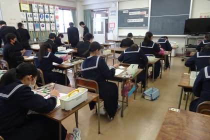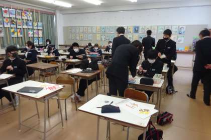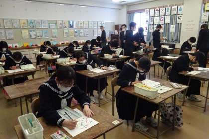 2月10日(木) 3年B組は美術の授業でした。自分の名前をデザインして描いています。
