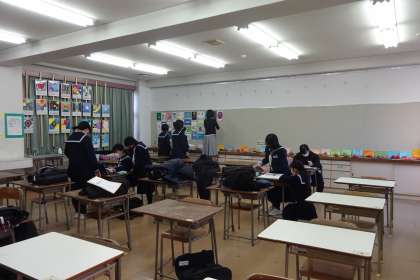 美術部は、活動を終えた生徒が作品を鑑賞したり、時間ギリギリまで自分の作品に取り組んだりしていました。