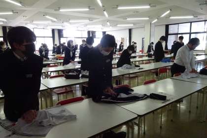 救命救急講習 その3 公開日 2022/02/24 更新日 2022/02/24 2年生 2月24日(木) 生徒は講師の方の説明を聞いて、心臓マッサージの実演をしました。しゃべらず、黙々と真剣に行っていました。