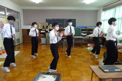 1B 体育 その1 公開日 2022/03/03 更新日 2022/03/03 1年生 3月3日(木) 今日はダンス発表会のリハーサルをしました。本番に着用する予定の衣装を身につけて最後の練習を行いました。もちろん、制服をそのまま衣装にというグループもいます。