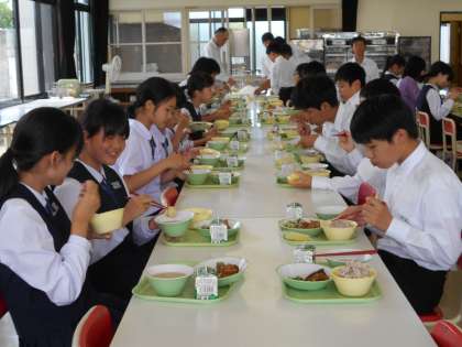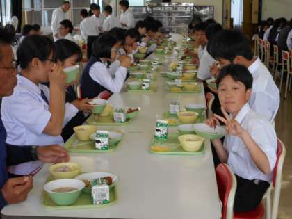 現3年生の入学当初の給食の様子です。なつかしいですね。1、2年生はまだ一度もランチルームで向かい合わせで食べたことがありません。早くこういう日が来ることを願います。