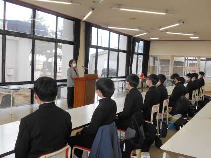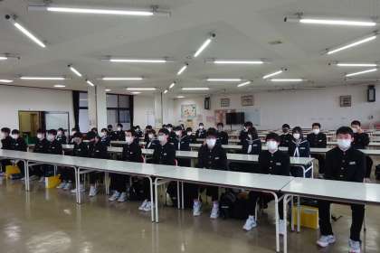 明日(8日)、明後日(9日)は県立高校一般受検日です。そこで終学活後、校長先生、学年主任の先生から激励の言葉をもらいました。