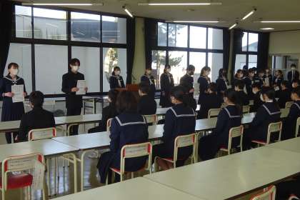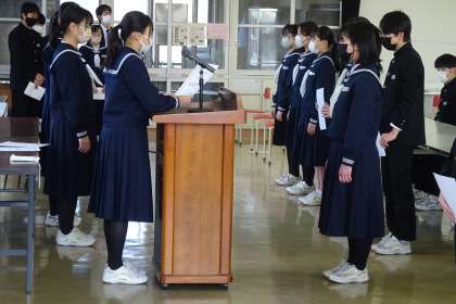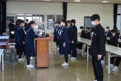 生徒会役員任命式 その3 公開日 2022/03/11 更新日 2022/03/11 生徒会・専門委員会 3月11日(金) 次に、新生徒会長から執行部運営委員、委員会の専門委員長へ委嘱状が授与されました。
