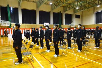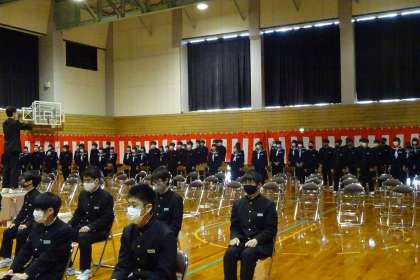 卒業式予行 公開日 2022/03/14 更新日 2022/03/14 学校行事 3月14日(月) 全校生徒が揃って卒業証書授与式の予行を行いました。新型コロナウィルス感染症予防のため、式歌練習を学年別で行っていたので、声を出しにくそうでした。明日の本番は学習発表会のときのような歌声が響くことを期待しています。 (写真上:入賞) (写真中:卒業生の歌) (写真下:在校生の歌)