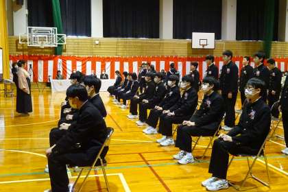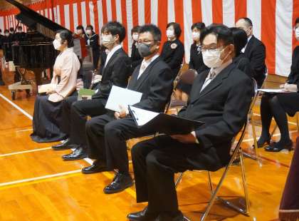卒業証書授与式 その1 公開日 2022/03/15 更新日 2022/03/15 学校行事 3月15日(火) 昨晩の雨が嘘のように晴れました。卒業生を祝福しているかのようです。PTA会長様、同窓会長様、自治振興会長様、保護者の方をお招きして、第75回卒業証書授与式が挙行されました。