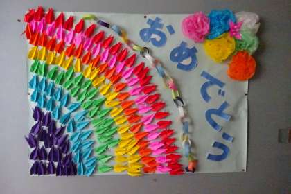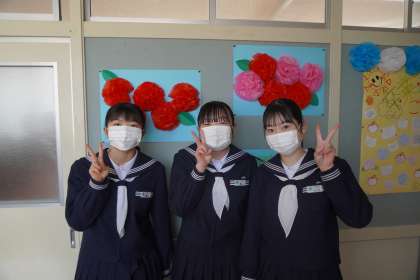 3月15日(火) 教室に来るまでの廊下には、在校生がお祝いの飾り付けをしてくれました。