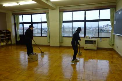 ワックスがけ その1 公開日 2022/03/18 更新日 2022/03/18 学校生活 3月18日(金) 1、2年生が次の学年の生徒に気持ちよく教室を使ってもらいたいと、自分たちの教室のワックスがけをしました。床がピカピカに光っています。