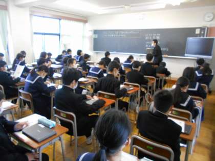 上:理科(学力調査の見直し) 下:全員にクロムブックが配付されました。