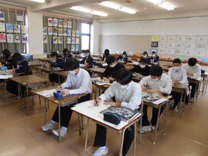 3−B:美術科です。 「ゲルニカを模写しよう」という課題で学習しました。