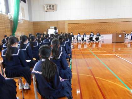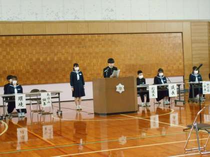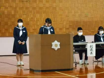 前期 生徒総会 公開日 2022/04/22 更新日 2022/04/22 学校生活 令和4年度 前期 生徒会スローガンと生徒会執行部、専門委員会の活動計画が承認されました。 上・中:専門委員会活動計画の説明をしています。 下:校長先生の話の際、生徒は、自然と体を向けていました。 素晴らしい。