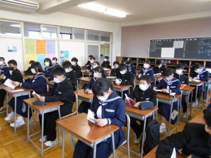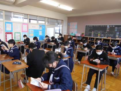 朝学活:おはようございます。 朝読書:本に集中してます。