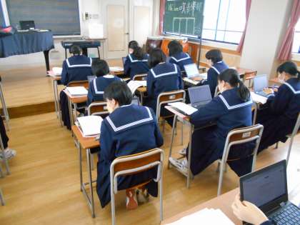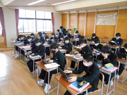 2年生 音楽:音楽鑑賞をしながら、感想やまとめを入力しています。