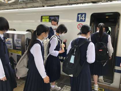 修学旅行 京都駅→広島へ 3年生 公開日 2022/05/17 更新日 2022/05/17 3年生 サンダーバードに揺られ、京都駅に到着しました。京都駅では、14分間という短時間での移動が必須でしたが、速やかにのぞみ19号に乗り継ぎました。乗り遅れた人はいません!