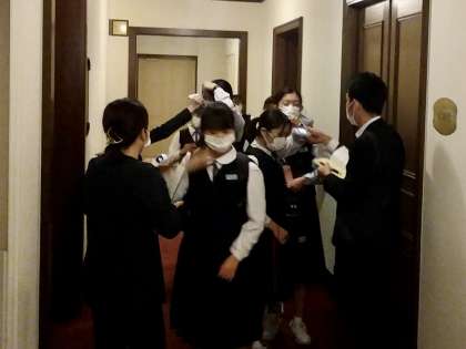 修学旅行 おはようございます 3年生 公開日 2022/05/18 更新日 2022/05/18 3年生 修学旅行2日目。朝の健康観察、みんな元気です。検温後、食事会場に入り、ホテルの素敵な朝食をいただいています!