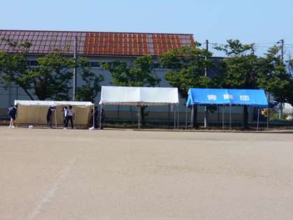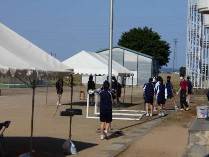 体育大会予行の準備です。 2、3年生リーダーが行っています。
