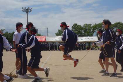 真剣勝負!男の8の字跳びです。 写真は、朱雀団の様子です。