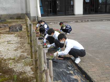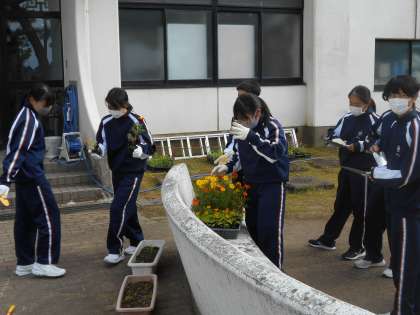 花苗の植え付け1 公開日 2022/06/13 更新日 2022/06/13 学校生活 放課後、環境委員会で苗植えをしました。 苗の種類は、サルビア、ファリナセア、マリーゴールド、トレニア、メランポジウム、コリウス、ジニア、センニチコウ、ニチニチソウ、ペチュニアです。 植え付けの場所は、生徒玄関前、北門前、グラウンド部室裏です。 学年で分担して活動しました。