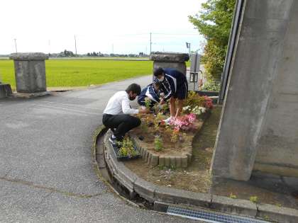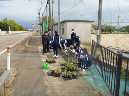 花苗の植え付け3 公開日 2022/06/13 更新日 2022/06/13 学校生活 上:2年生、北門花壇を担当しました。 中:3年生、生徒玄関前花壇を担当しました。 下:1年生が担当した部室裏には、2,3年生が合流し植え付けをしました。