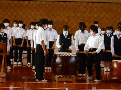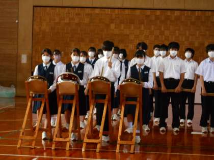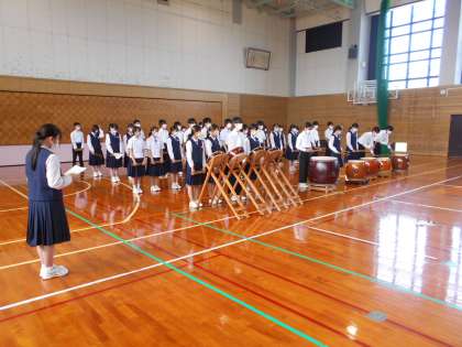 6月27日に実施予定の三成太鼓伝授式に向けて、3年生が学年練習を行いました。