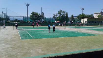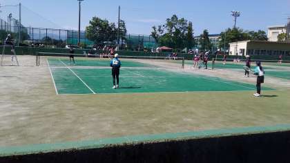 ソフトテニス部です。 試合の相手は和合中学校です。 3-0の勝利でした。