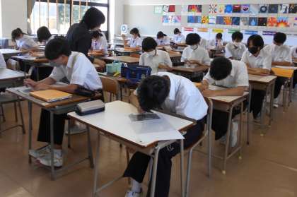 7月8日(金) 3年生の授業の様子です。 写真上:3A(美術) 写真下:3B(技術)
