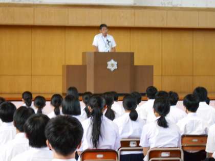 2学期 始業式 公開日 2022/08/29 更新日 2022/08/30 学校生活 8月29日(月) 体育館に全校生徒が集い、2学期の始業式を行いました。 写真上:授賞伝達式 写真中:校長先生の式辞 写真下:校長先生のお話を真剣に聴いている生徒たち