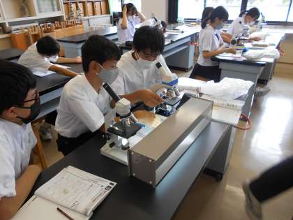 理科の授業です。 顕微鏡の使い方について学習しました。