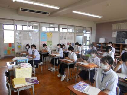 数学の授業です。 二次方程式の解の公式について学習しました。