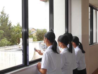 朝の様子2 公開日 2022/09/07 更新日 2022/09/07 学校生活 VAS活動の様子です。 校舎内の窓ふきを行いました。 上:活動に使用する新聞紙を配付しました。 中・下:廊下の窓ふきを行いました。