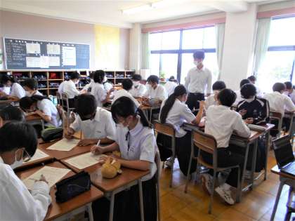 授業の様子 1年生 公開日 2022/09/12 更新日 2022/09/12 学校生活 9月12日(月) 1年生は、5限にエンカウンターを行いました。 グループで、友だちに自分の考えを伝え合っていました。