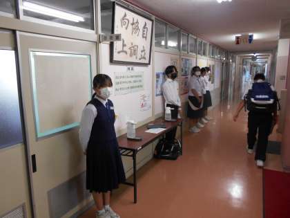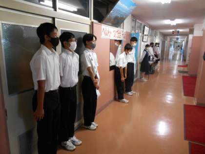 生徒会役員候補者、応援者、選挙管理委員です。 朝の挨拶を行いました。