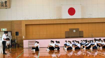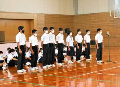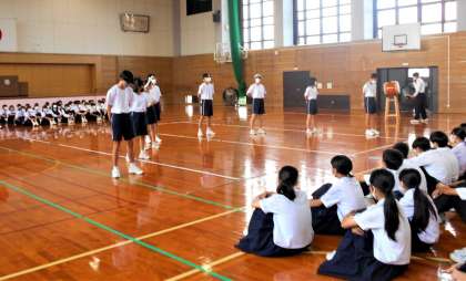 生徒会役員任命式の後、16日から行われる市新人大会の壮行会を行いました。