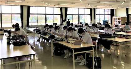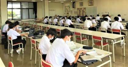 9月16日(金) 学校に登校した1・2年生は、ランチルームで自主学習に取り組みました。