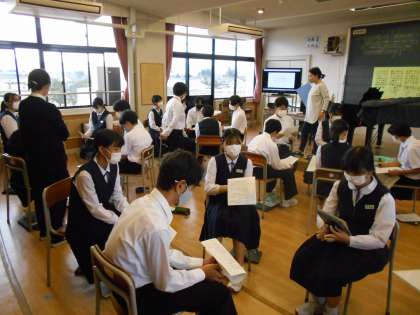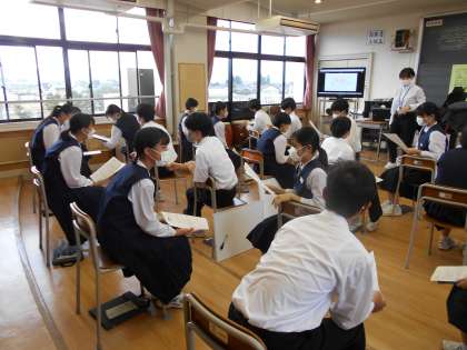 朝の様子2 公開日 2022/09/22 更新日 2022/09/22 学校生活 合唱コンクールリーダー研修会を実施しました。 上・中:ペアになって1分間スピーチ 下:グループになって目指すリーダー像について話し合いました。