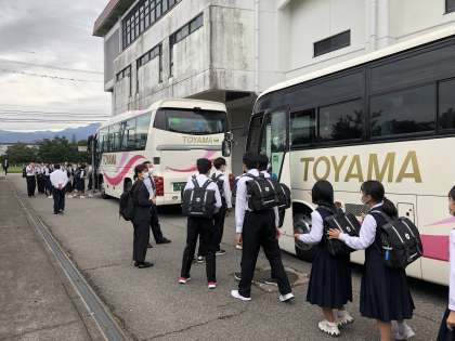 2年生は、本日金沢校外学習です。出発式を行い、バスに乗り込み学校を出発しました!