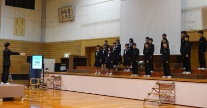 2年生の合唱です。 写真上:2A「君をのせて」 写真下:2B「地球星歌」〜笑顔のために〜