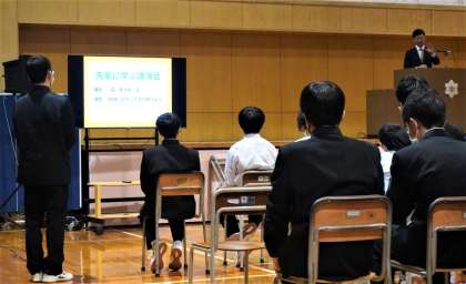 「目標に向かって歩き続けよう」という演題で、元プロサッカー選手で、本校の卒業生でもある森泰次郎さんによる講演を聴きました。
