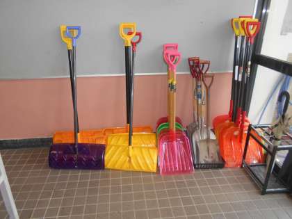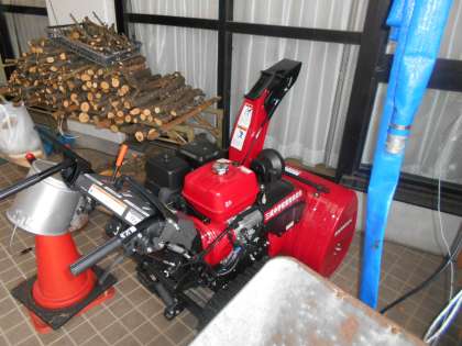 積雪に備えて、除雪機、スコップ類が準備されました。