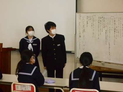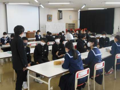 2学期を振り返っての学年集会をランチルームで行いました。