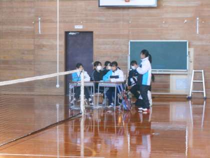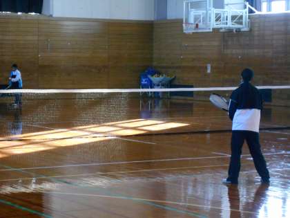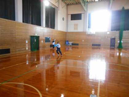 ソフトテニス部の活動の様子です。 体育館全面を使用して、実践練習に取り組みました。