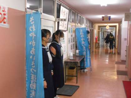 上:登校の様子 中・下:さわやかあいさつ運動の様子