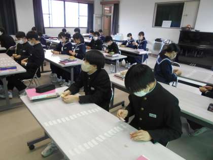 英語の授業です。 カードを使って、受け身の表現を学習しました。