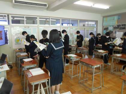 社会の授業の様子です。 雪が多い北陸で発達した産業について学習しました。