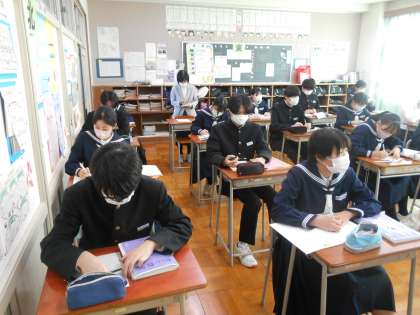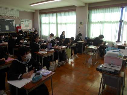 数学の授業の様子です。 三平方の定理を利用していろいろな長さを求める学習をしました。
