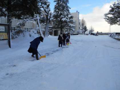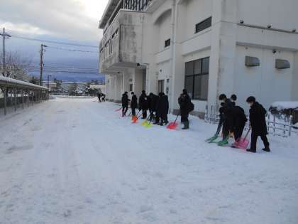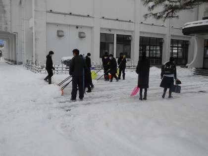 除雪当番の活動の様子です。 生徒玄関前がきれいに除雪されました。 ありがとうございます。
