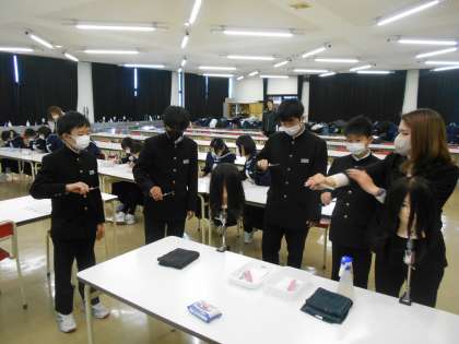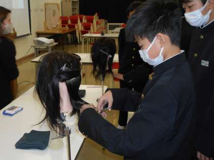 「13歳の学び」美容師 公開日 2023/01/27 更新日 2023/01/27 学校生活 学校法人 和楽学園 専門学校 富山ビューティーカレッジの美容科教員の方に講師で来ていただきました。 美容師の社会的役割や仕事について学びました。