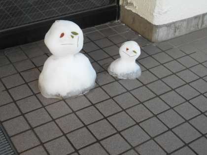 上:生徒玄関前に作られた雪だるまが溶けてきました。(14時頃の様子)