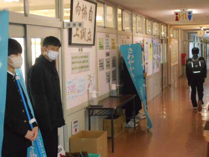上・中:さわやかあいさつ運動の様子です。 下:登校の様子です。